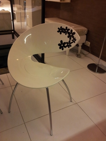 Sedia in policarbonato bianca con decoro a fiori e gambe cromate