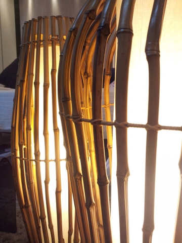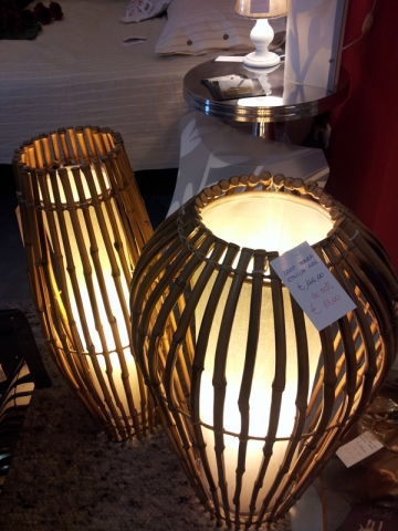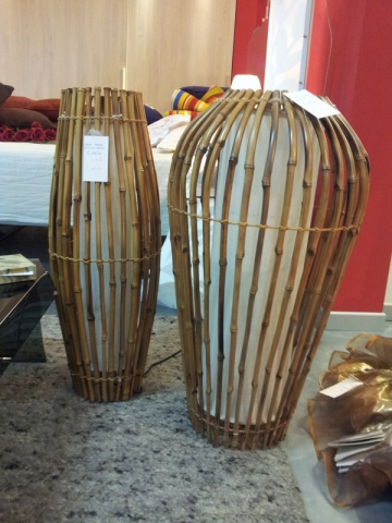 Coppia lampade etniche in bambù e tessuto di rivestimento ecrù