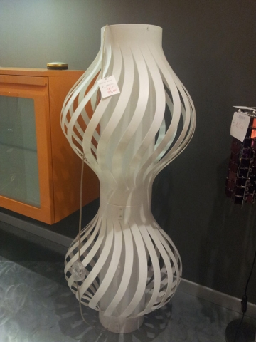 Lampada da terra in plastica bianca con forma ad onde e due lampadine interne.