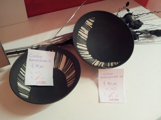 Coppia di ciotole di due dimensioni nere con decoro bianco