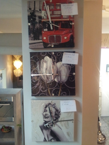 Orologio da parete in ecopelle con stampa e decoro materico dipinto e applicazioni di cristalli (soggetti vari).