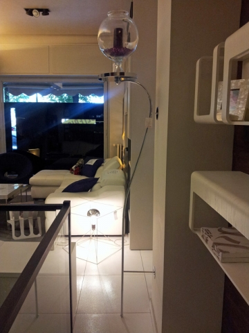 Portavaso in metallo cromato e vaso in vetro trasparente.