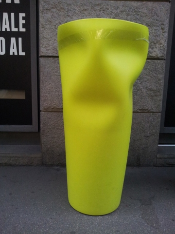 Vaso da esterno con forma unica in materiale plastico resistente agli agenti atmosferici.
