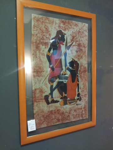Quadro batik africano originale incorniciato con fantasia arancio.