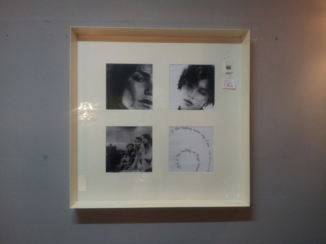 Quadro portafoto con cornice sporgente in legno laccato bianco.